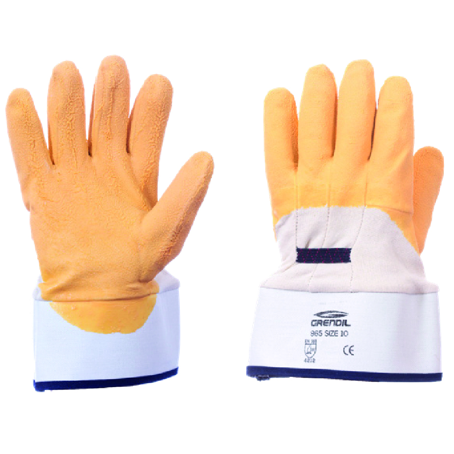 Guante de algodón con puño de seguridad y recubrimiento de látex rugoso color amarillo en palma y 3/4 de dorso. De uso rudo. Incrementa el agarre. MATERIAL: ALGODÓN, LATEX, LONA